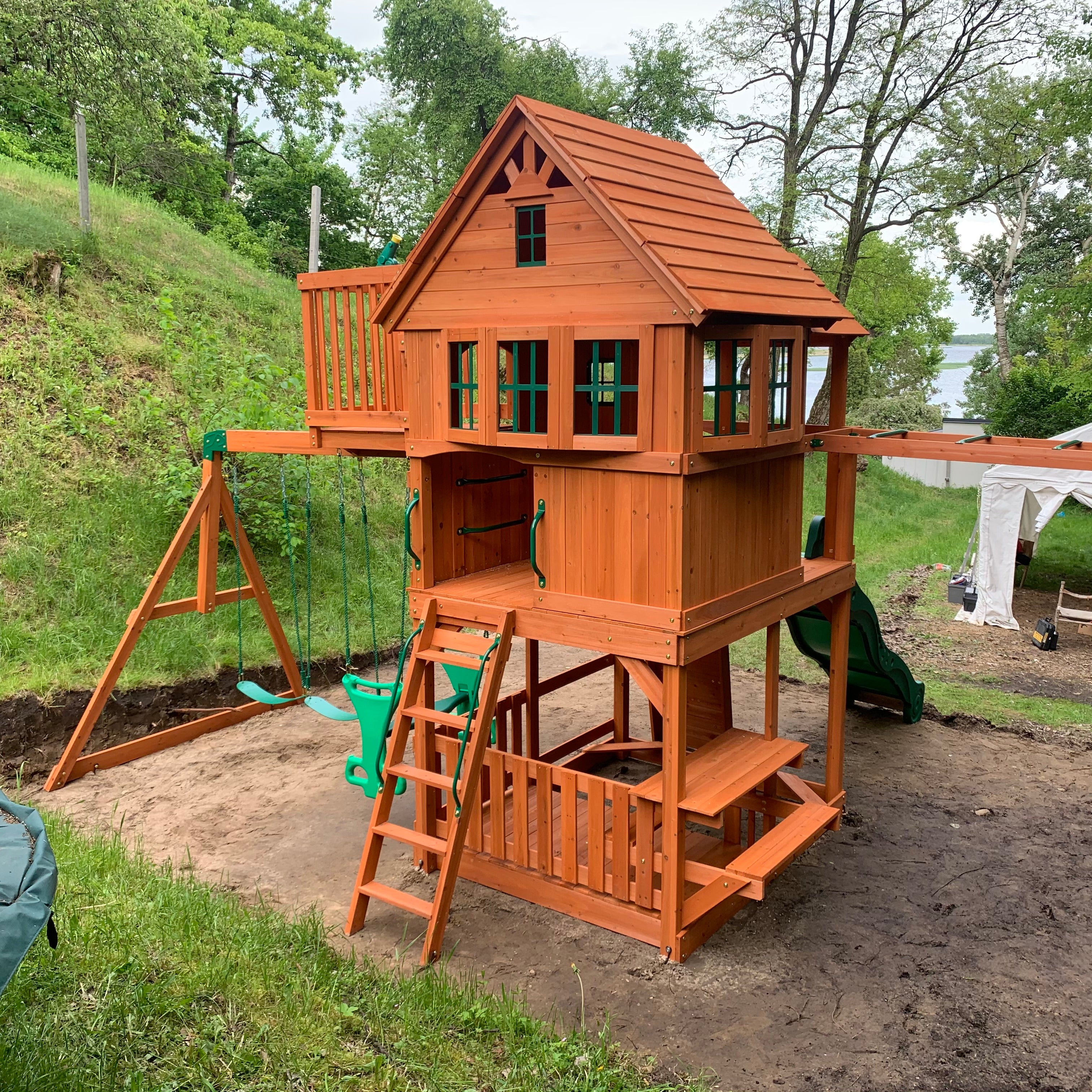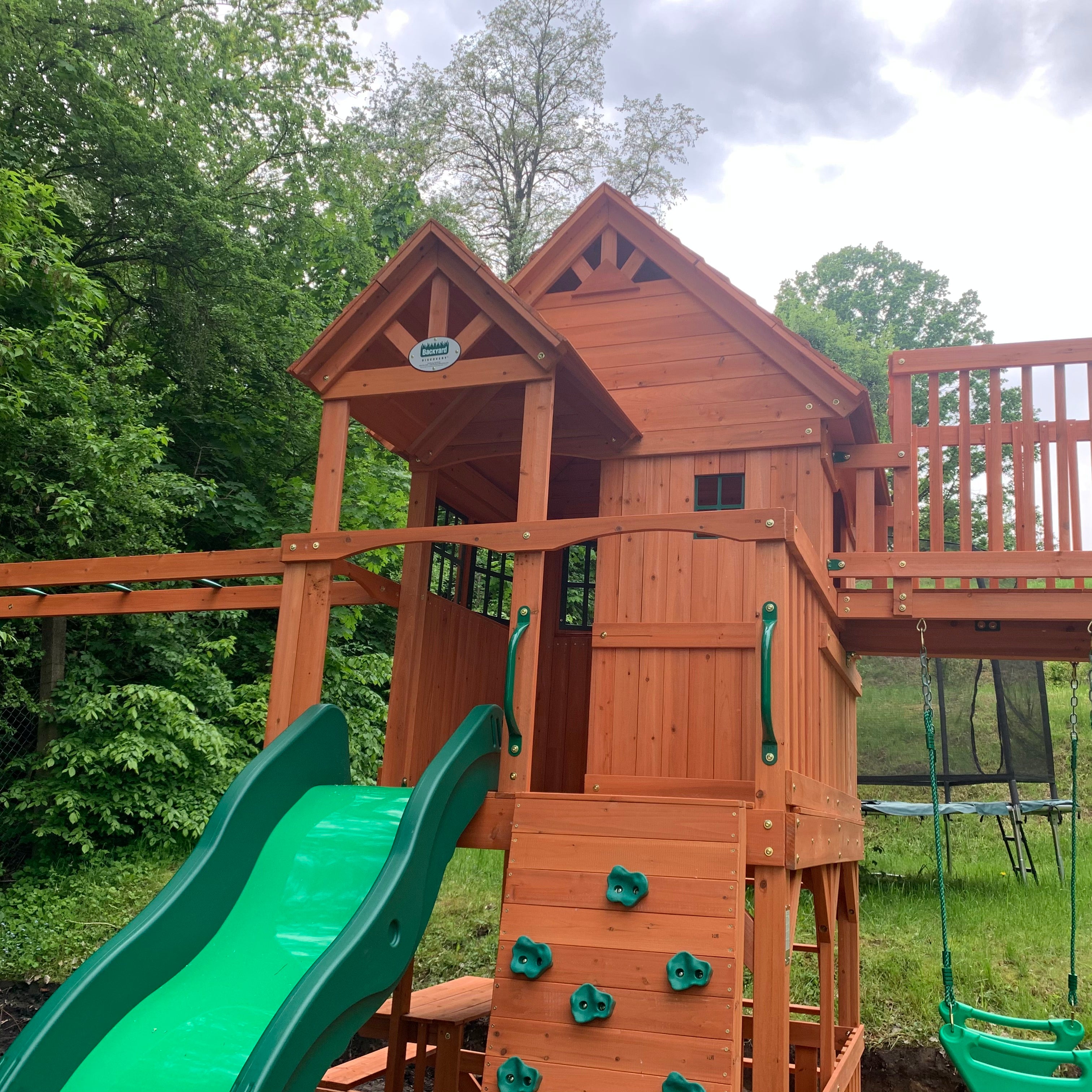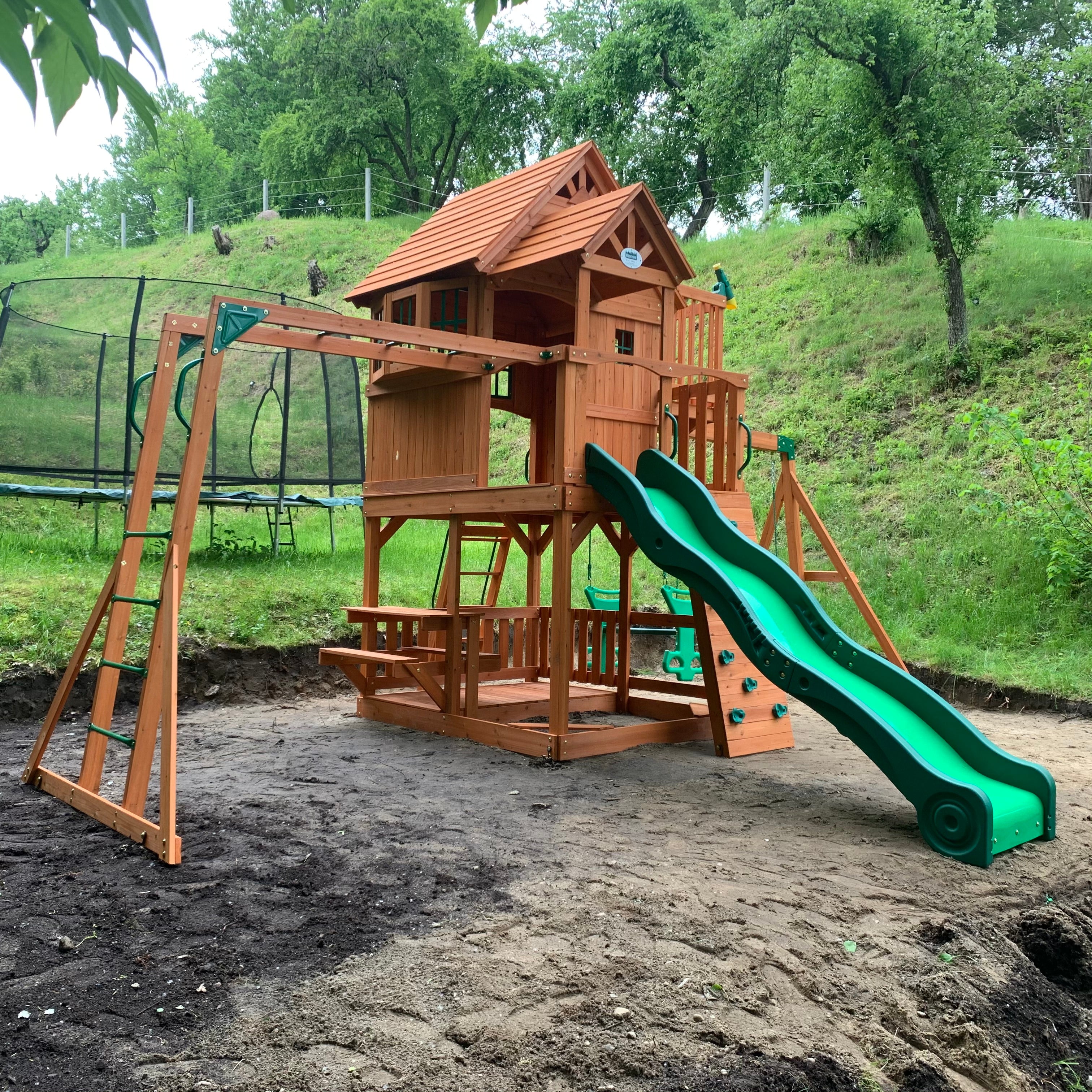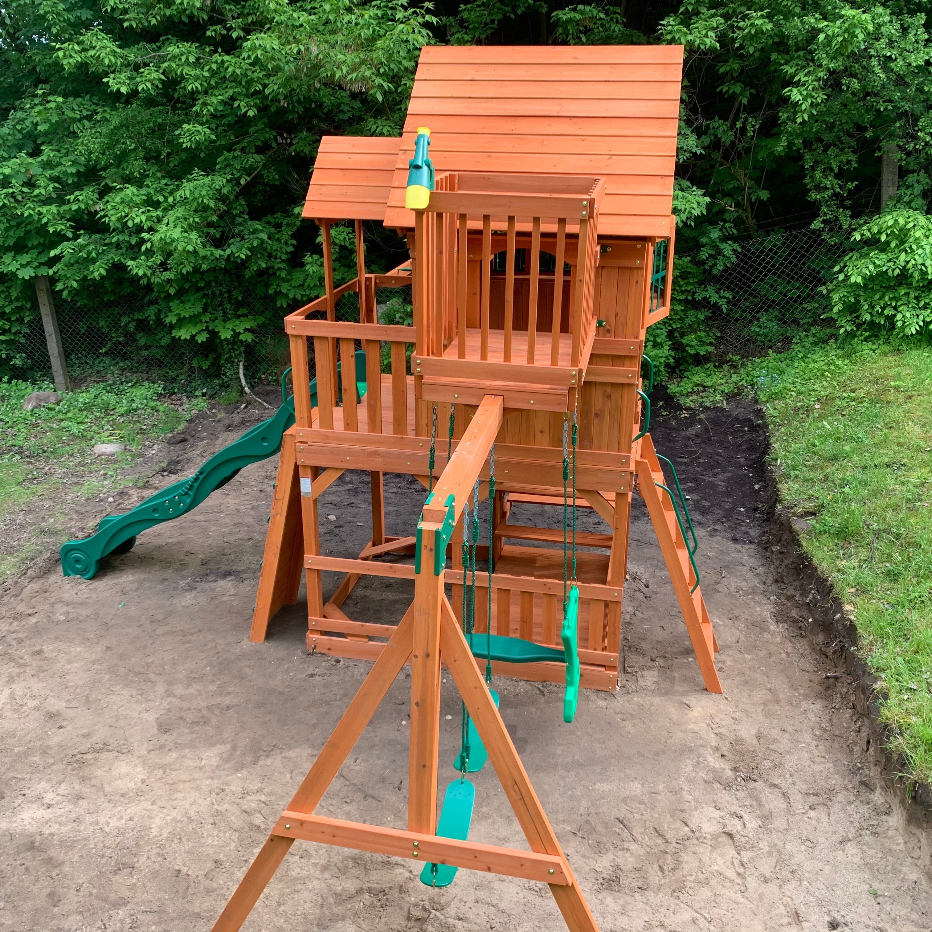 Backyard Discovery Skyfort II – drewniany plac zabaw dla dzieci 6,7 × 5,1 × 3,8 m · Backyard Discovery Skyfort II Wooden Swing & Play Set